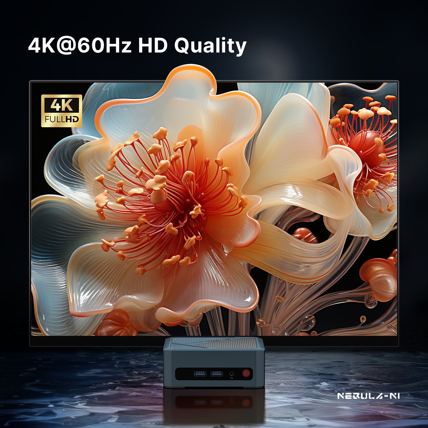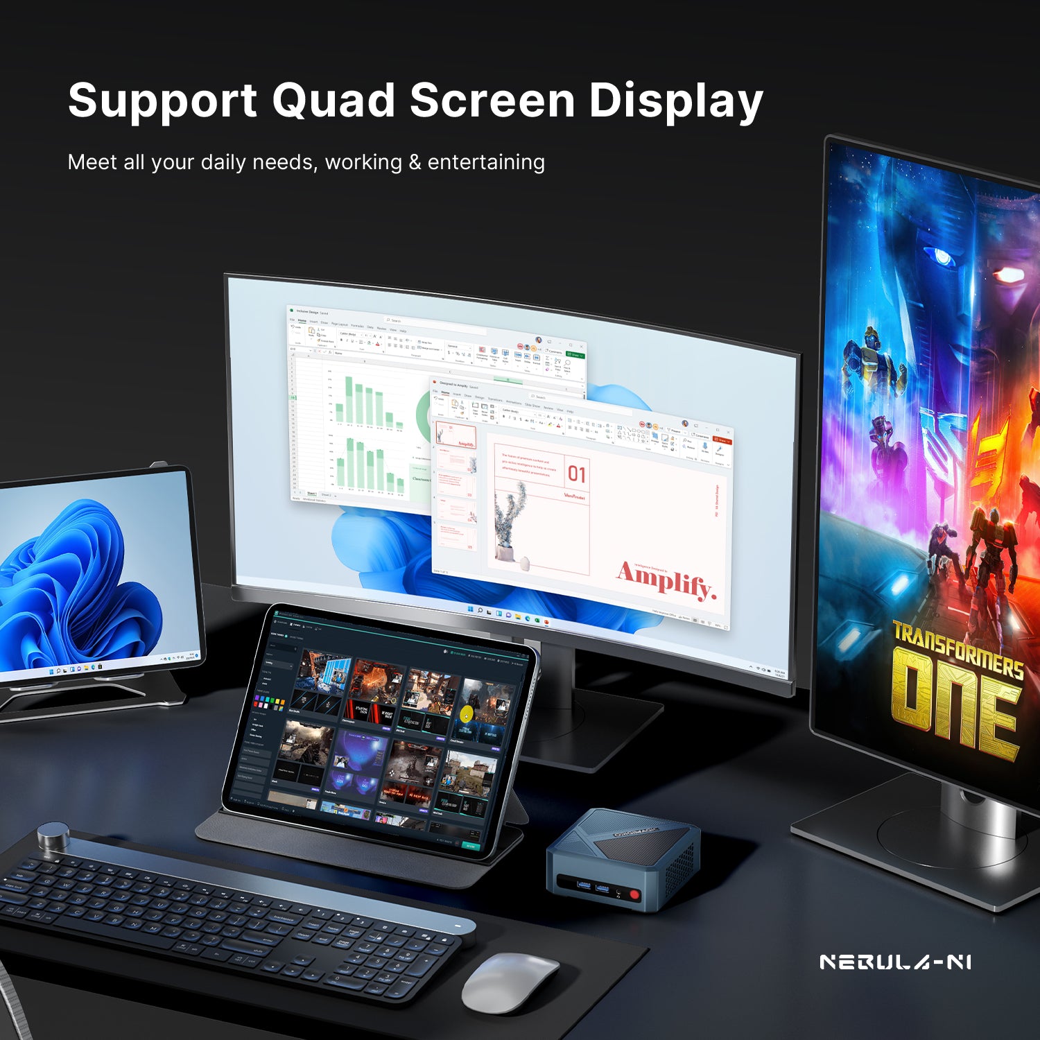 - 【4K@60Hz Quad Screen Display】The mini desktop computer is equipped 2xHDMI 2.0+2xType-C with features simultaneous Quad screen display. ORIGIMAGIC N1 lets you take your productivity to the next level on up to four 4K@60Hz displays.
