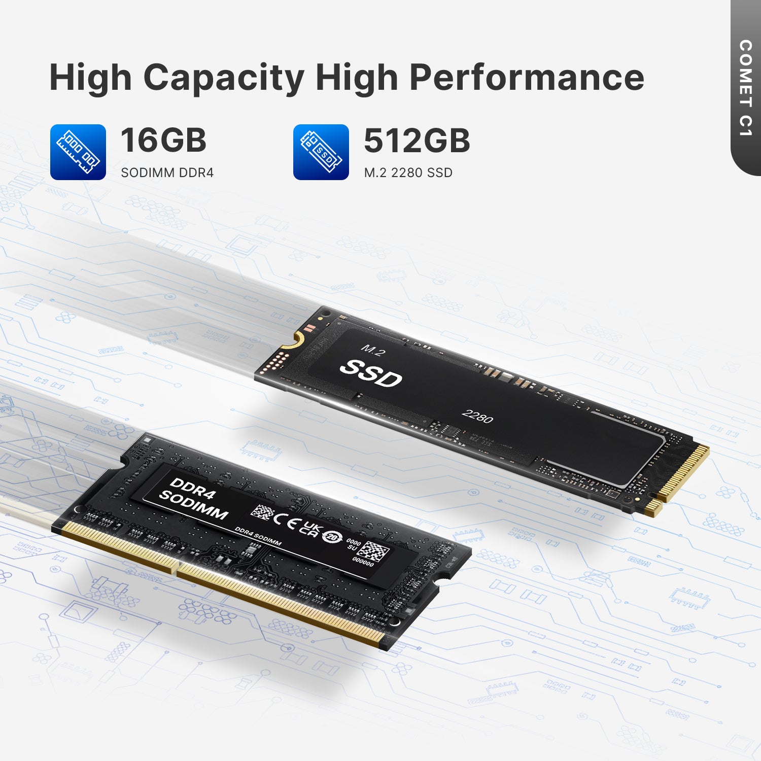 - 【16GB DDR4 512GB SSD】The mini computer has built-in single channel 16GB DDR4 RAM and 512GB M.2 NVMe 2280 PCIe 3.0 SSD. Max 32GB DDR4, Large capacity enables you to switch back and forth between more applications.