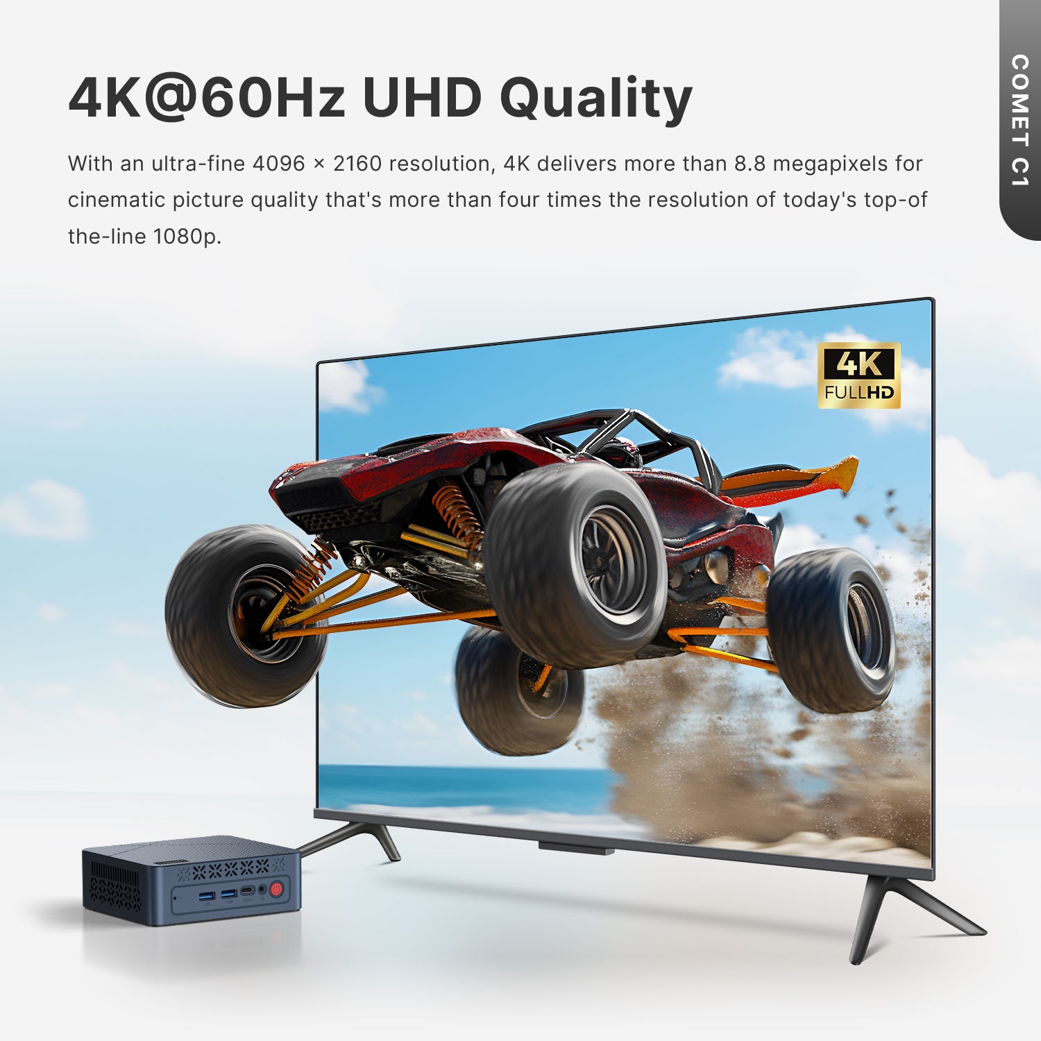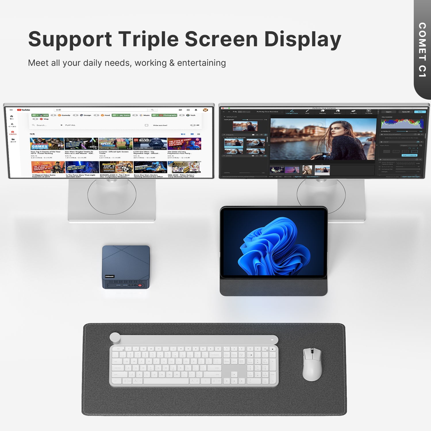 - 【4K Triple-Screen Display】 This Mini desktop computer has equipped with UHD Graphics (Max Dynamic Frequency 1.20 GHz), supports 4K@60GHz three screen display. This micro pc with Dual HDMI 2.0 Ports and 1 Type-C Port, easily connecting 3 monitors, reduce waiting time, efficiency doubled Work, Entertaining and Creation.